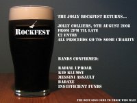 I was asked to join the team (Fiona – Jolly Colliers & Dave – Radial Uproar) to assist with the all dayer. I booked the bands and booked Nicky Boy for sound and assisted him. I played with my bands Badaxe and Kid Klumsy and also filled in for Insufficient Funds. Although it rained for a couple of hours the attendance was great and the large beer garden hosted a great party.